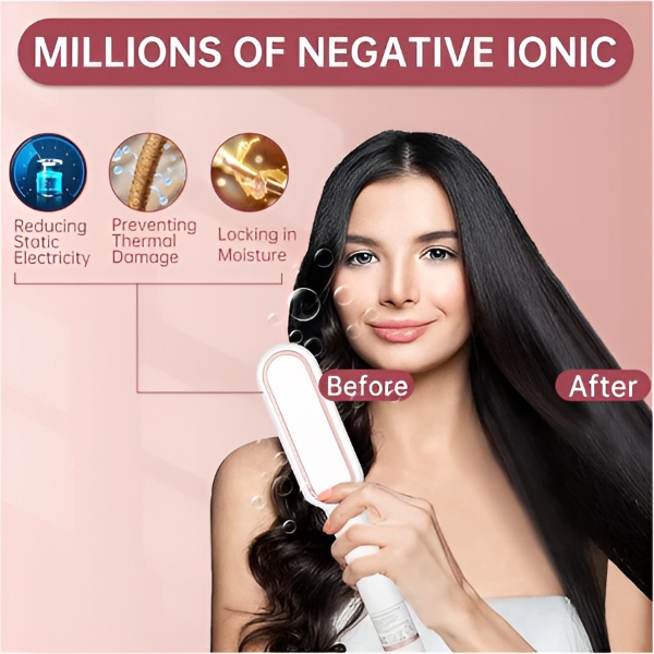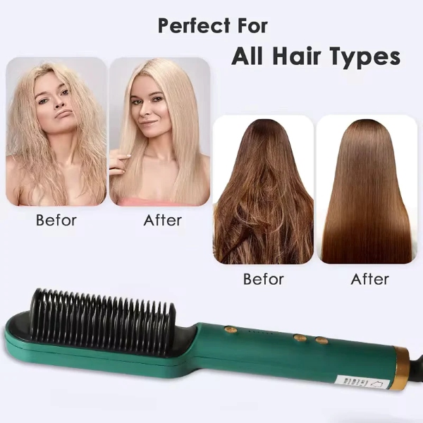 Този универсален 2-в-1 уред – изправител и гребен – е подходящ както за изправяне, така и за навиване, осигурявайки гладък, професионален резултат само за 10–15 минути.
