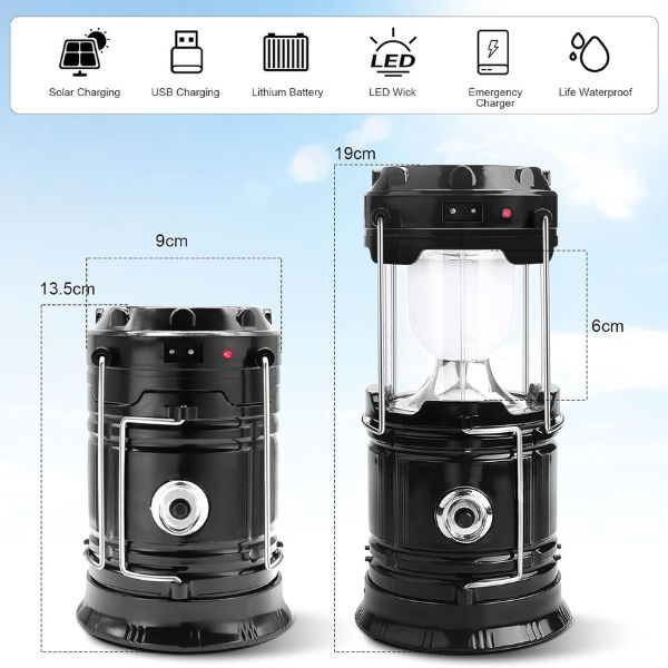 Поддържайте лампата си заредена с две удобни опции: слънчево захранване и USB зареждане. Вградените соларни клетки в горната част на лампата осигуряват екологично зареждане, докато включеният USB кабел предлага бърза и надеждна алтернатива. Тази двойна функционалност ви гарантира, че винаги имате резервен вариант, независимо дали сте извън електрическата мрежа или в близост до източник на захранване.