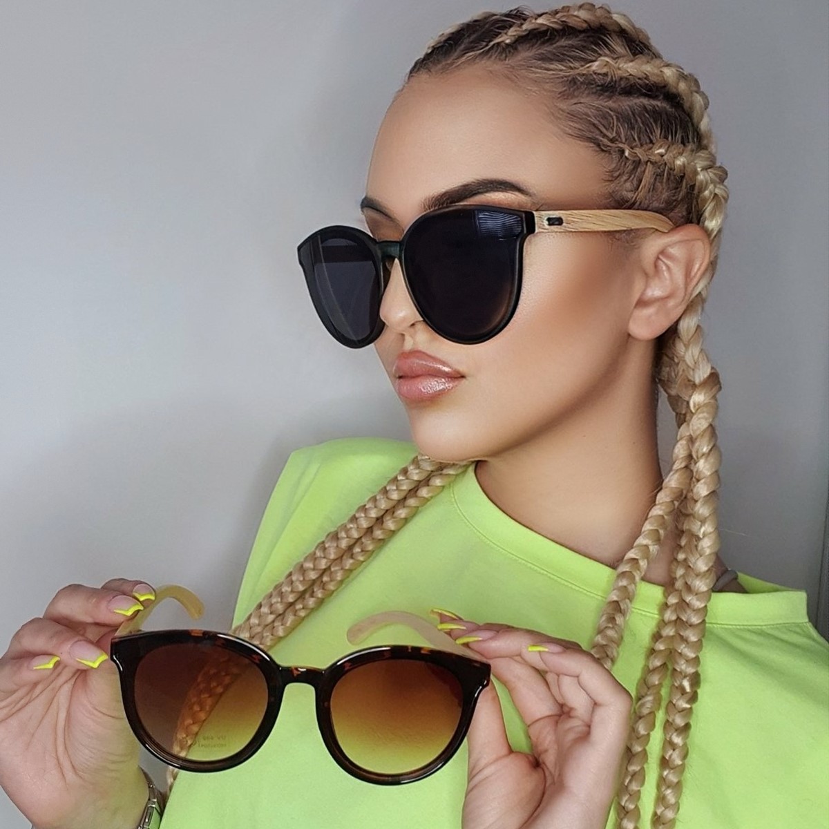 Прегърнете качеството с отразяващи стъкла и модерен дизайн на котешки очи.🏖️😍 Подчертани от леки дървени дръжки, първокласна пластмасова рамка и пълна UV защита с фактор 400.💕✨ Комплектът се предлага с калъф за съхранение и кърпа за почистване.