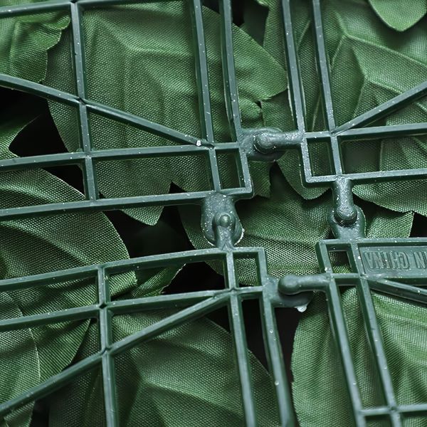 Панелът с изкуствени зелени листа се монтира, като пластмасовият елемент се поставя в отвора в другата част на пластмасата.