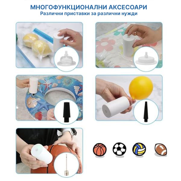 🎈 2-в-1: Вакуум уред и въздушна помпа
