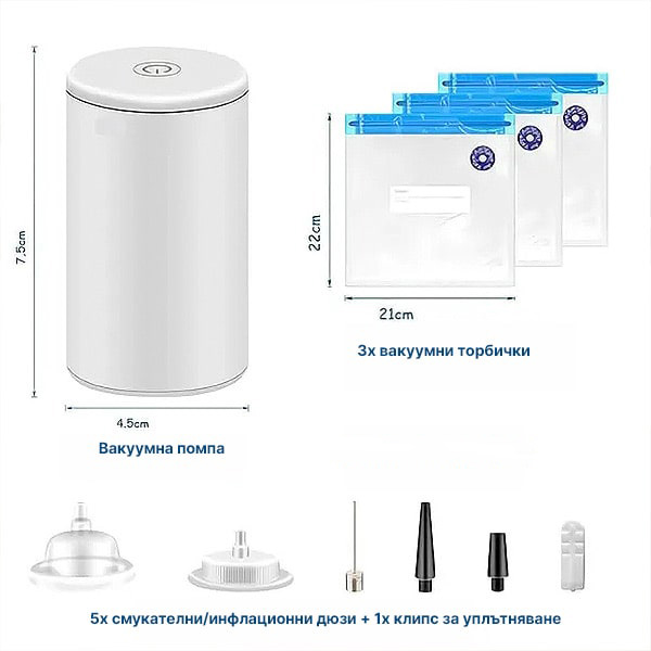 🎈 Двойна функция като въздушна помпа – Надува също така торби за съхранение, балони и други.
