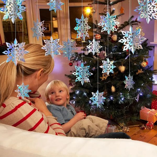 Тези Коледни преливащи се висящи хартиени снежинки са подходящи за различни поводи, включително за Коледна украса за партита в зимна страна на чудесата, Новогодишна украса за партита, партита за рождени дни на тема „Замръзналото кралство“, материали за бебешки партита и празнична украса за дома.