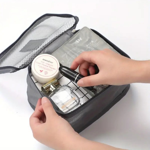 Здравият, водоустойчив материал гарантира, че вашите тоалетни принадлежности и козметика остават безопасни и сухи. Малките чанти с цип са идеални за грим, лосиони или всякакви течни предмети, които трябва да се държат на място без изтичане в чантата ви.