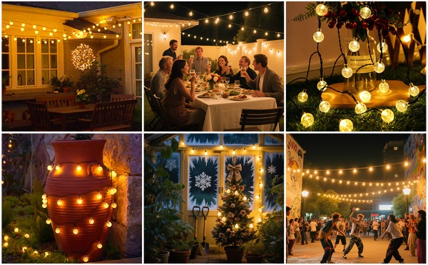 Отбелязвайте специалните си събития – сватби, пикници или коледни тържества с трайна елегантност. Струнните светлини и соларните панели SOLSTICE са водоустойчиви по IP44 и могат да се използват на закрито и на открито, без да се притеснявате за повреди от атмосферните условия.
