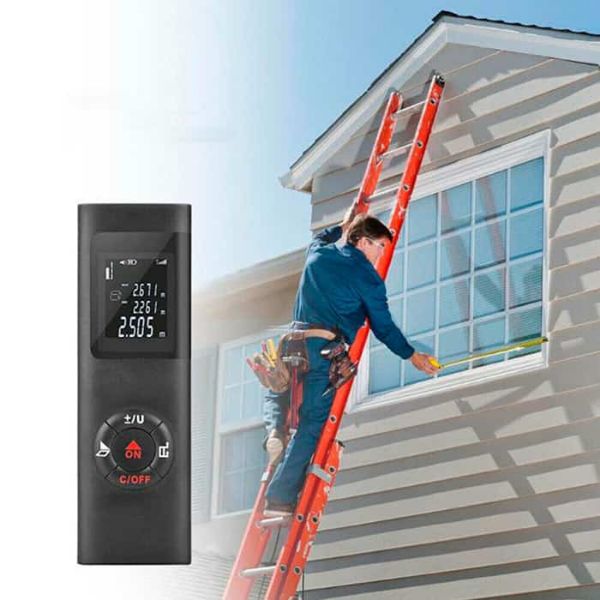 Лазерният далекомер е компактен и преносим, което ви позволява да го съхранявате в джоба, кутията с инструменти или чантата си.