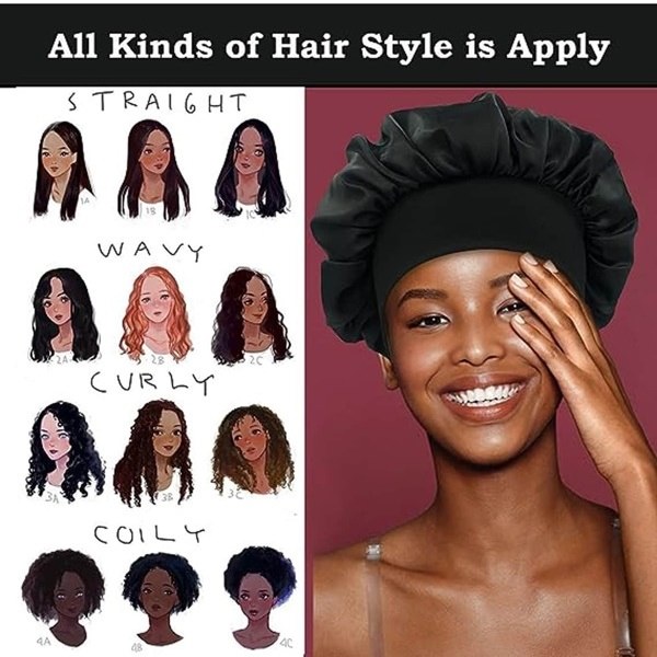 Защитете естествената си прическа с тези основни сатенени шапки за коса за сън. Подходящи са за къдрава, естествена, вълнообразна, права, чуплива, дълга коса, плитки и др.