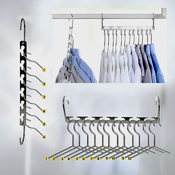 3x Стоманена закачалка за дрехи с пестене на пространство