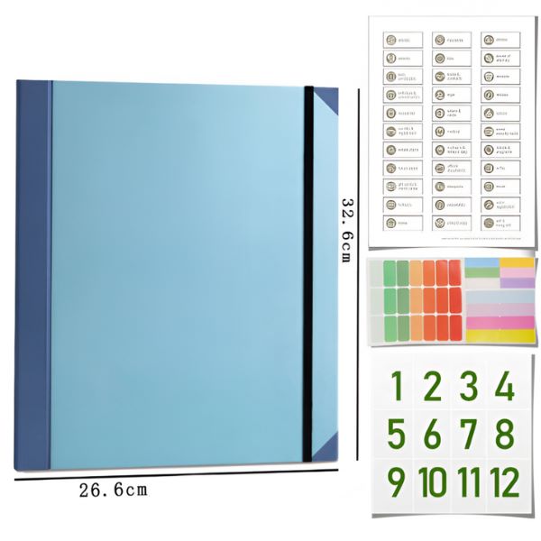 Ръчно илюстрираното съдържание и лепящите се етикети правят проследяването на документите лесно и стилно.