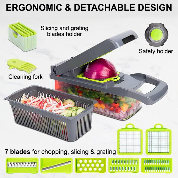 12-в-1 уред за рязане и нарязване на зеленчуци (включени 7 остриета) | CHOPMASTER