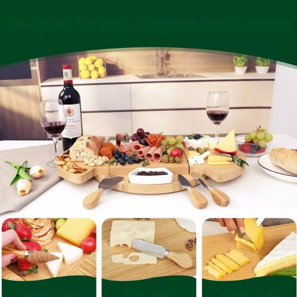 Този поднос не само елегантно показва вашите закуски, но и служи като дъска за рязане. Гладката му дървена повърхност улеснява нарязването и сервирането на всички ваши любими закуски на едно място.